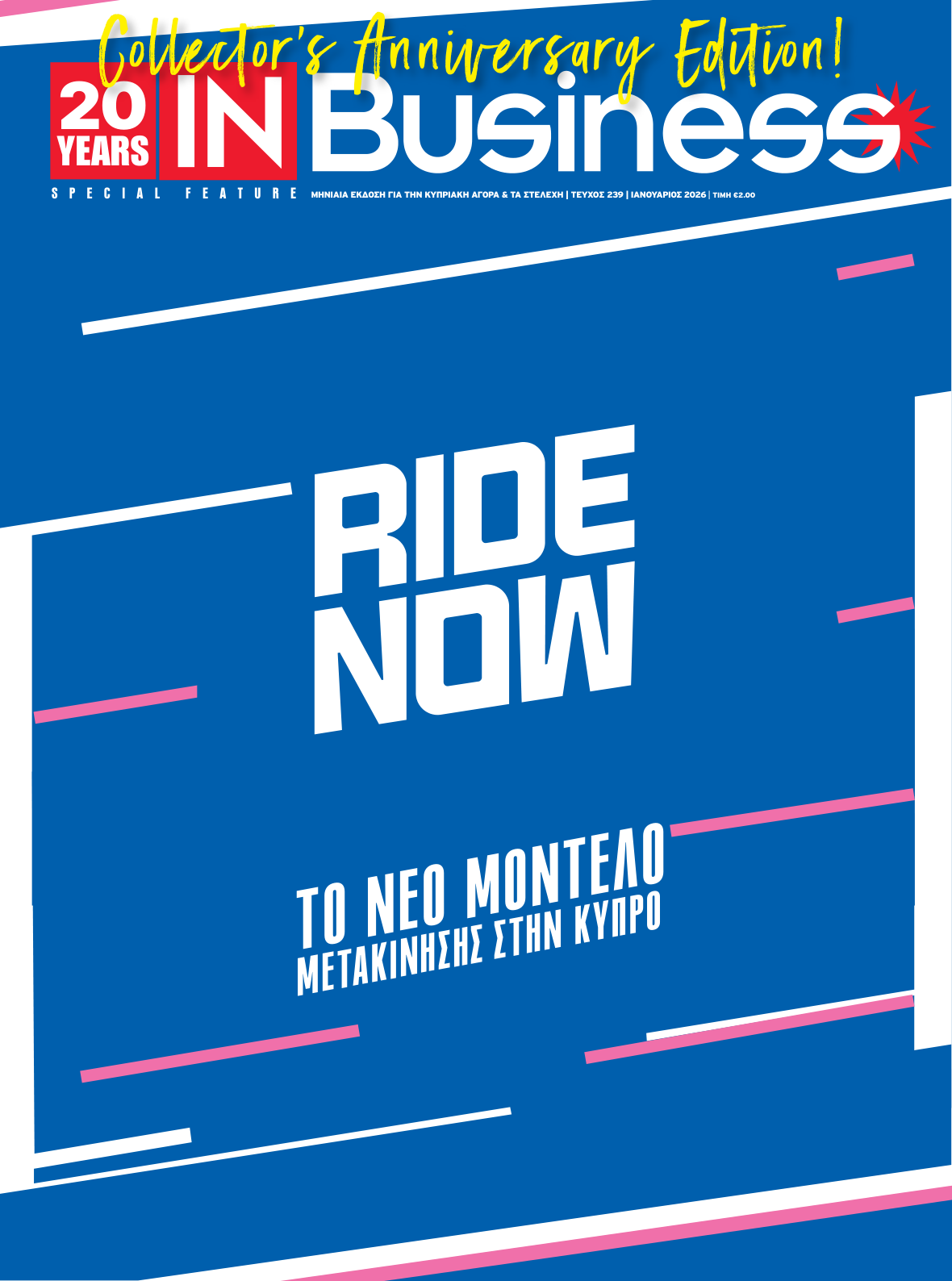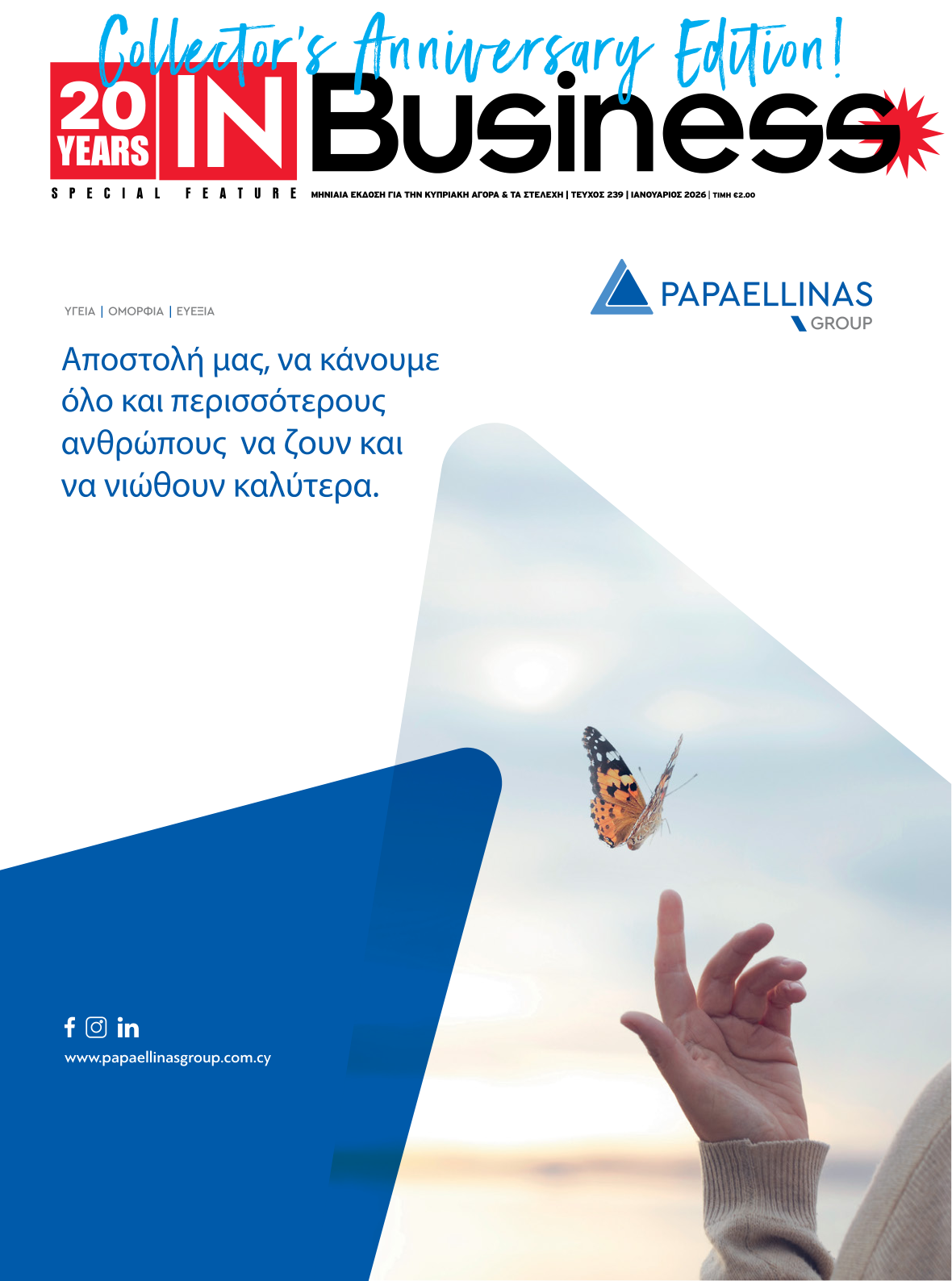 20 χρόνια επιχειρηματιών, στελεχών, ιδεών και ιστοριών που μας εμπνέουν. Αυτή η επετειακή έκδοση είναι γιορτή για την επιχειρηματικότητα της Κύπρου. Σας ευχαριστούμε που είστε μαζί μας σ’ αυτό το ταξίδι. Συνεχίζουμε με την ίδια ευθύνη, με σεβασμό πάντοτε, αλλά και ενθουσιασμό, καταγράφοντας την κυπριακή επιχειρηματική ειδησεογραφία που διαμορφώνει το μέλλον.